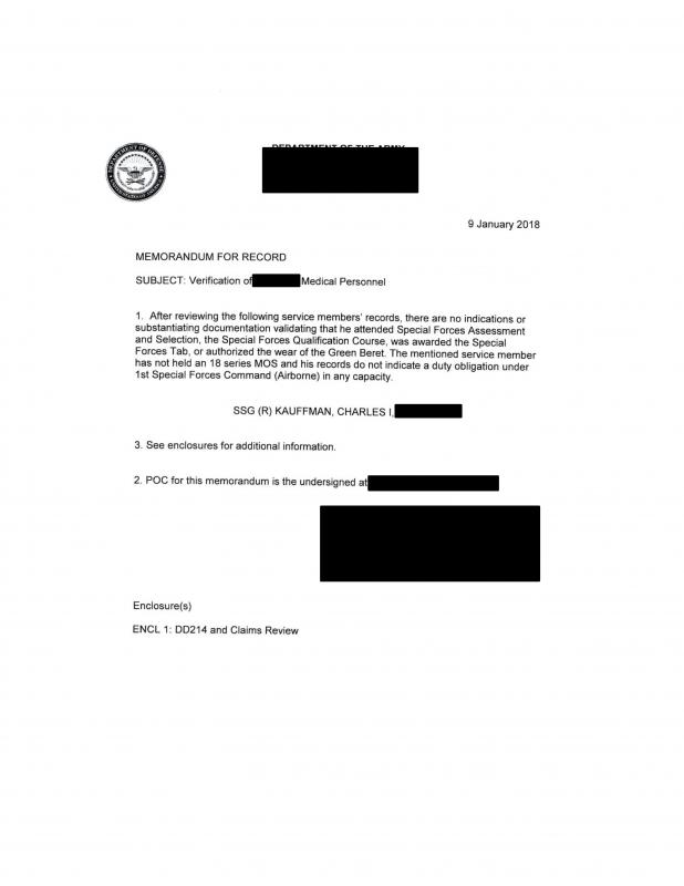 Charles Kauffman, Fake Airborne, CAG, CDQC, Ranger, 18D fraud